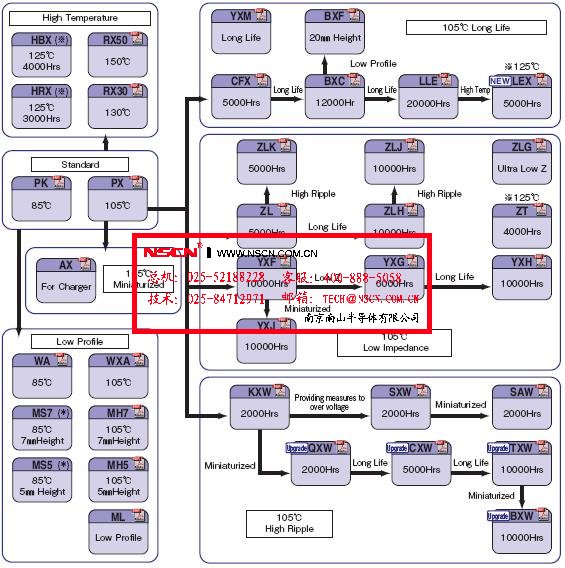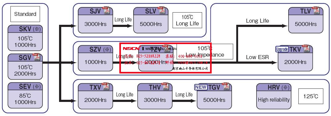 B導(dǎo)電性高分子鋁固體電解電容器產(chǎn)品體系 如下圖